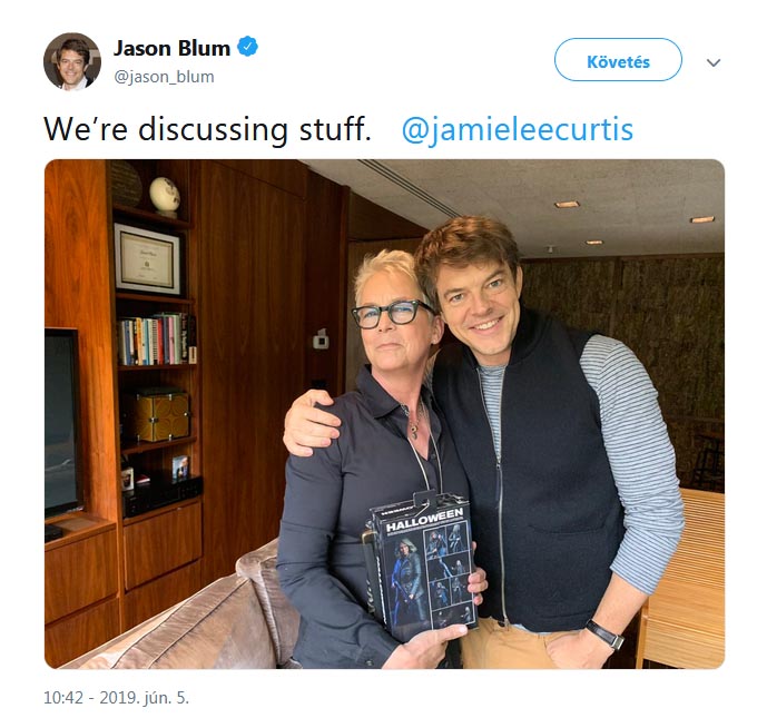 Jason Blum stúdiófőnök egy vidám fotót is posztolt a Twitteren Jamie Lee Curtisszel, „Tárgyalunk a dologról” megjegyzéssel, ami már bizonyíték, nem ígéret.