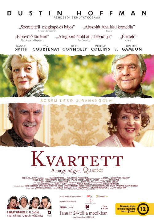 A Kvartett, Dustin Hoffman első rendezése, egy bájos elmélkedés az öregedésről. Nem operál mélyreható meglátásokkal, de érzékenyen és szimpatikusan kezeli a témát. Bár a négy főszereplő kombinált életkora a múmiákkal vetekszik, bárki, aki elég öreg ahhoz, hogy már ne érezze magát elpusztíthatatlannak erőt meríthet ennek az életigenlő vígjátéknak a nem túl bonyolult üzenetéből: amíg nem haltál meg, addig mindig van tovább.